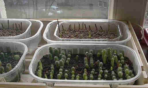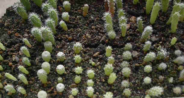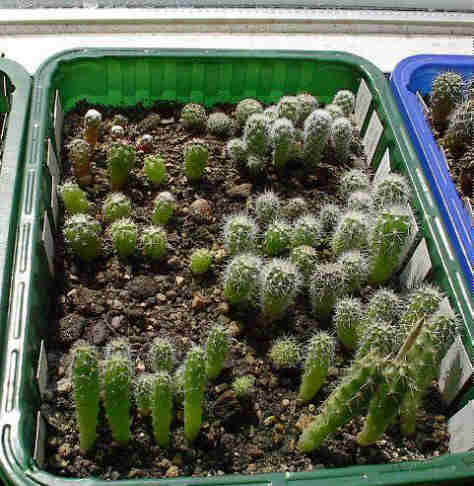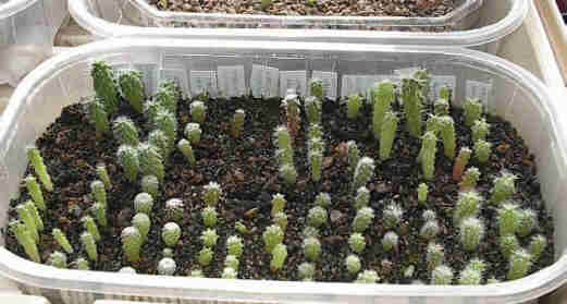 normale Kakteenerde gesetzt . Da meist nicht alle Samen aufgegangen sind lasse