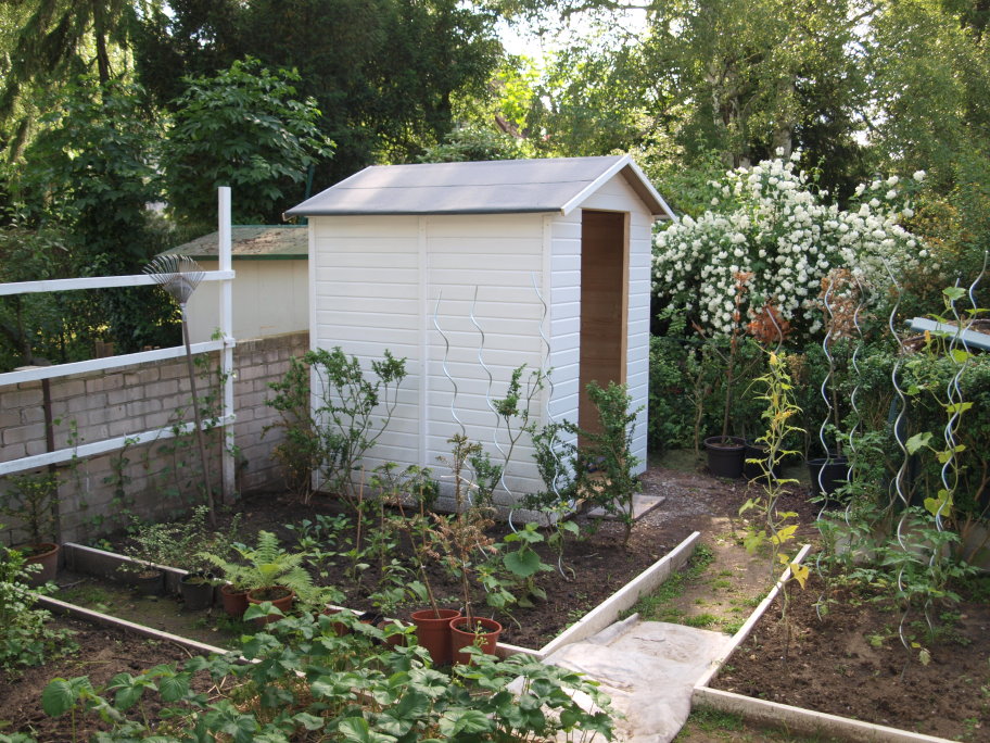 Im Sommer habe ich ein Geraetehaus aufgebaut das ebenfalls weis gestrichen wurde.
