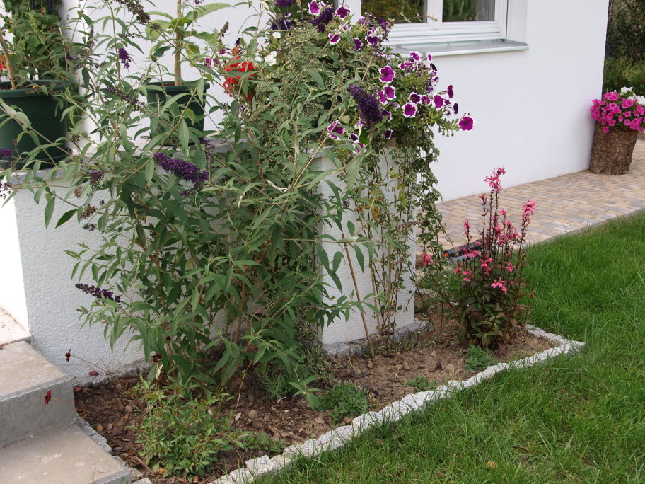 Das Beet neben dem Haus sah voriges Jahr noch kahl aus.